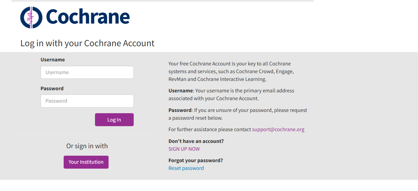 - Create a Cochrane Account - if you do not already have one