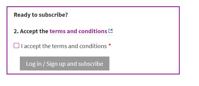Please tick "I accept the terms and conditions", then click " Subscribe"