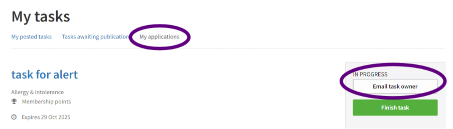 - Find the task you are working on and click on Email task owner